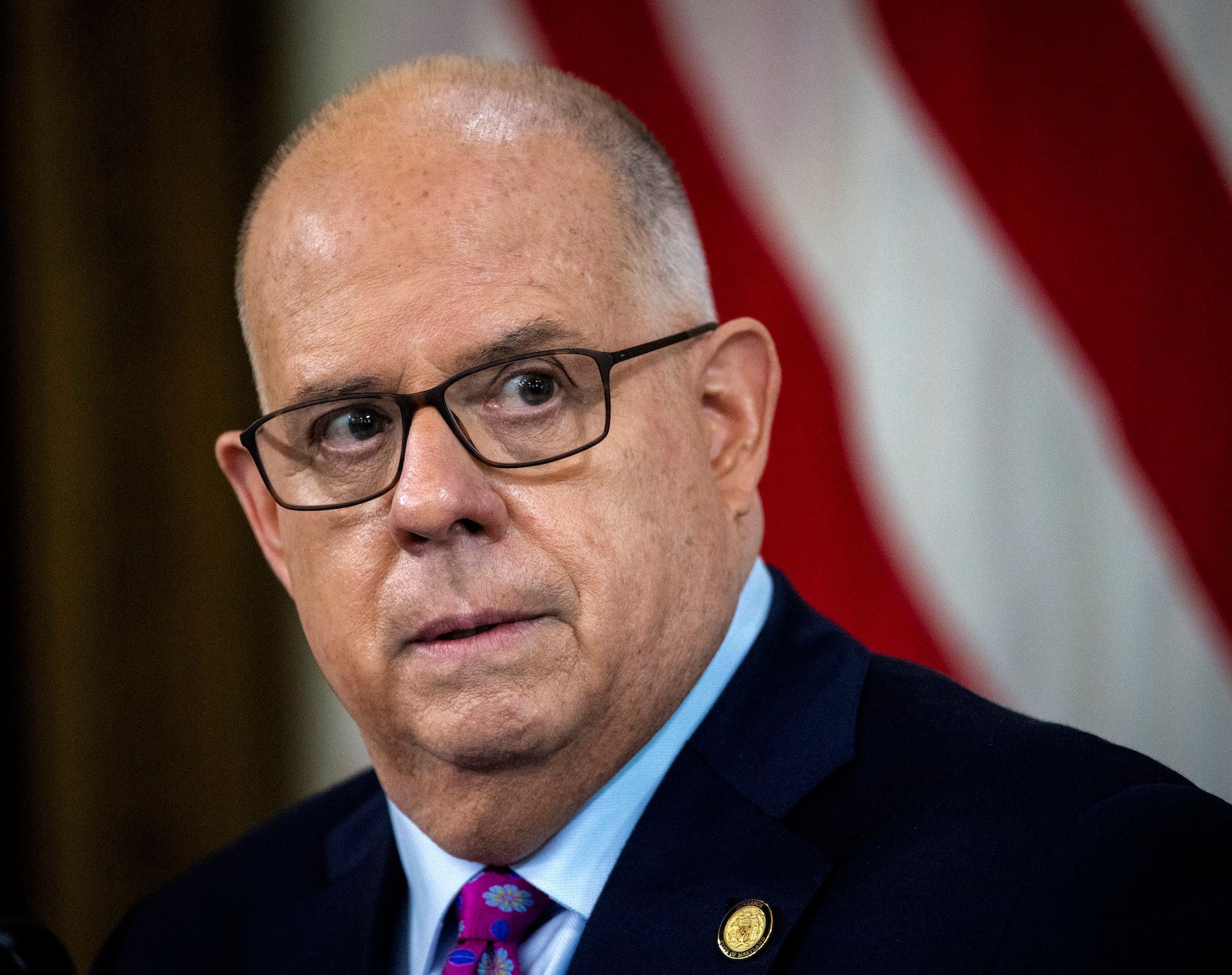 Republican Maryland Gov. Larry Hogan said during a media briefing about the coronavirus that no one had the "constitutional right to walk around without a mask."
