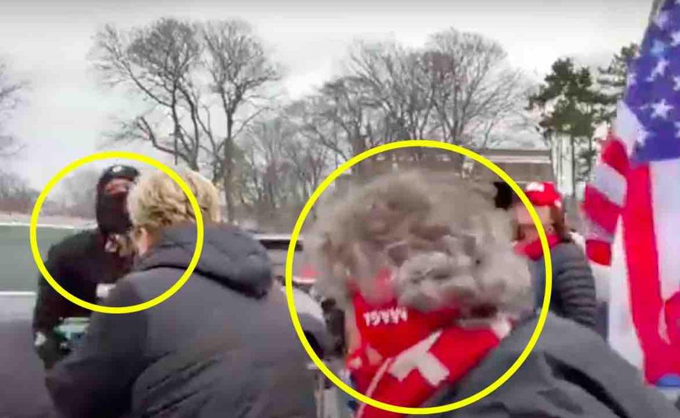 In video recorded at the event, Jean-Jacques Jr. — founder of the Freedom Fighters Coalition of 2020 — is seen across a barrier from the Trump supporters dancing to "It's Raining Men," which the Trump supporters had playing in the background.