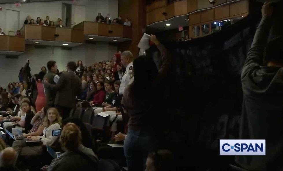 The College Fix said Georgetown media relations and the university's law school didn't immediately answer its questions regarding how they'll respond to the protesters shutting down the speech, which the outlet said was actually organized by pro-immigration groups and the law school.