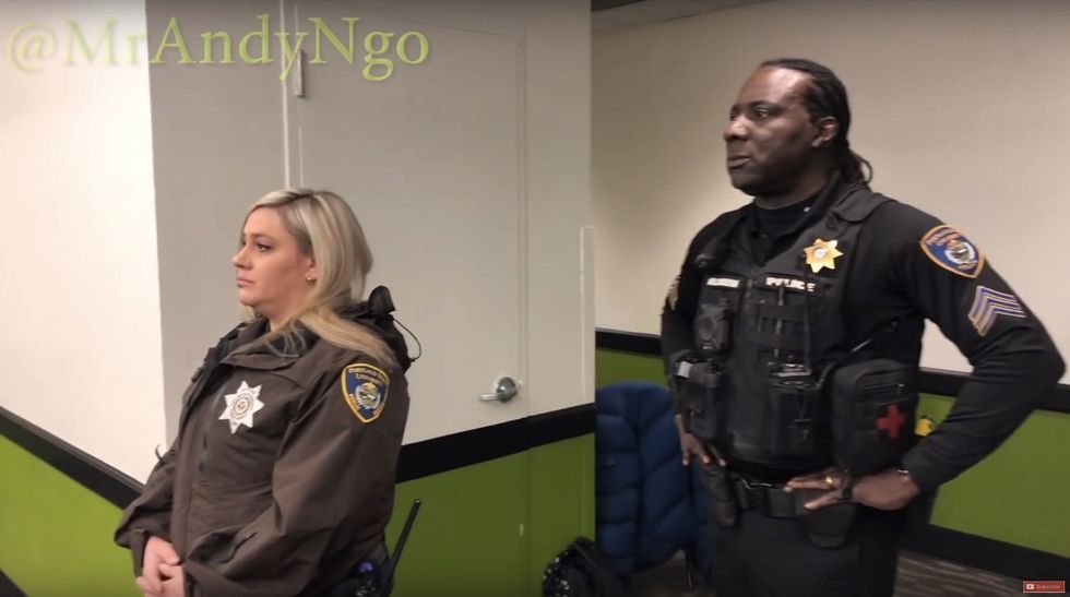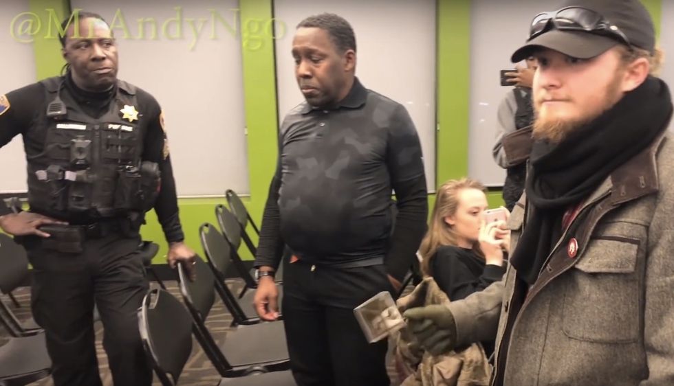 A leftist protester was caught on video using a cowbell to disrupt a College Republicans event for over an hour at Portland State University — and campus police at the meeting did nothing, according to independent journalist Andy Ngo, who shot video of last week's incident.