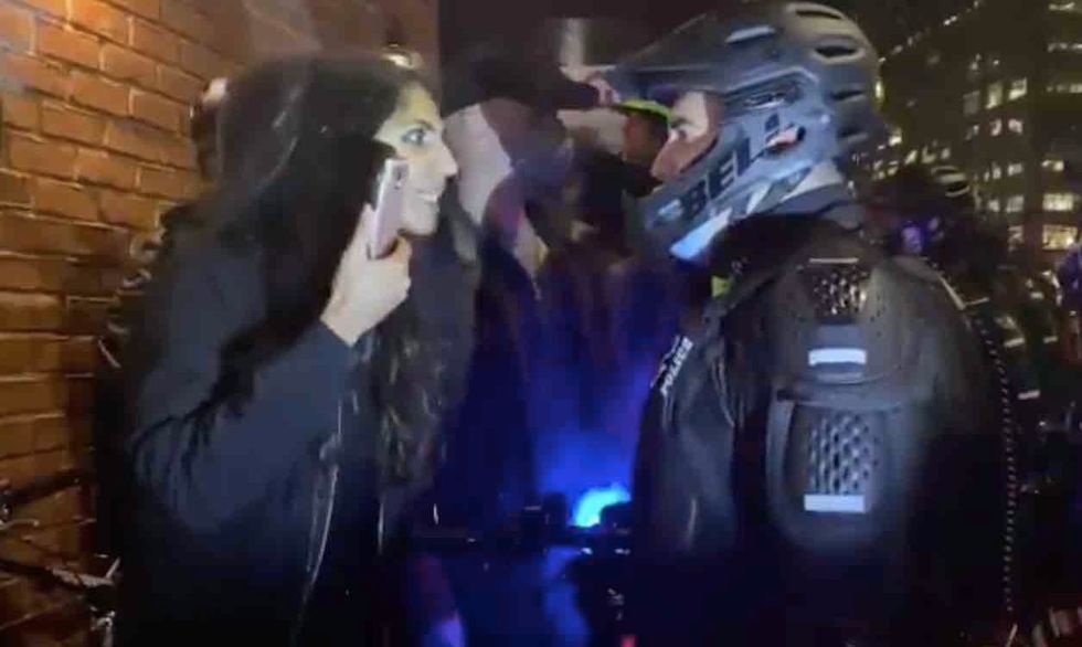 However, the angry leftist took things a little bit too far: She proceeded to spit in the officer's face.