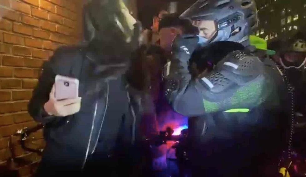 The incident was one of a number of clashes between police in protesters in Manhattan, which included a fire set in the street and taunts directed toward diners, the Post said in a separate story.