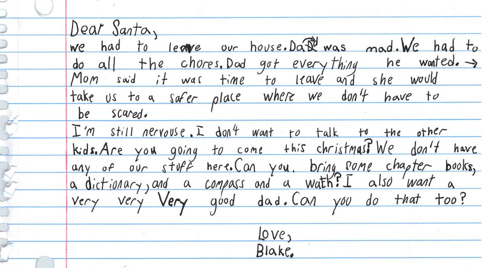 A heart-wrenching letter from a 7-year-old child in a domestic violence shelter in Texas has inspired many to donate in order to help those in dangerous situations.