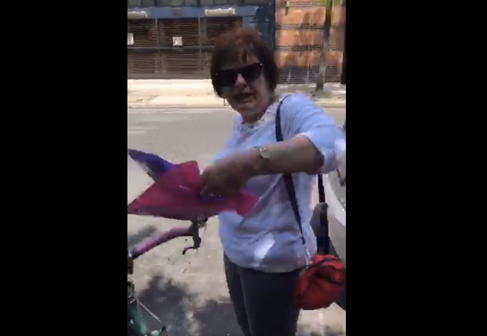 Sims kept stalking her while she held on to her rosary, trying to get a reaction. "Shame on you, ma'am!"