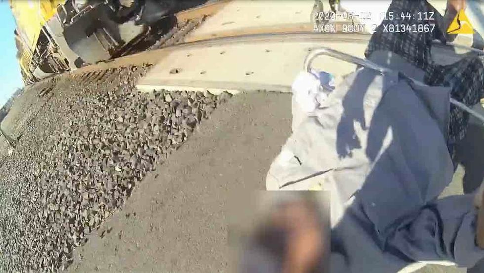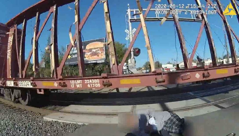 Urrea's bodycam caught the heart-stopping scene as she saw a 66-year-old man in a wheelchair apparently stuck on the Union Pacific Railroad tracks near Lodi Avenue Wednesday morning — while a train was barreling toward him, the Lodi News reported.