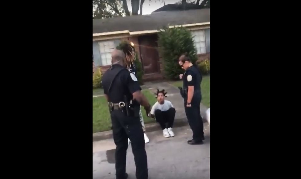 But also during the encounter one of the detained men said he was "unlawfully searched" and wanted to know the names of the officers detaining them, according to cellphone video of the incident.