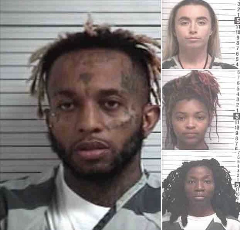 The sheriff's office said the three women and one man — 42-year-old Ellecia Bryant, 19-year-old Ashayla Lewis, 26-year-old Ourania Moore, and 35-year-old Khary Johnson — were arrested on drug and child neglect charges.