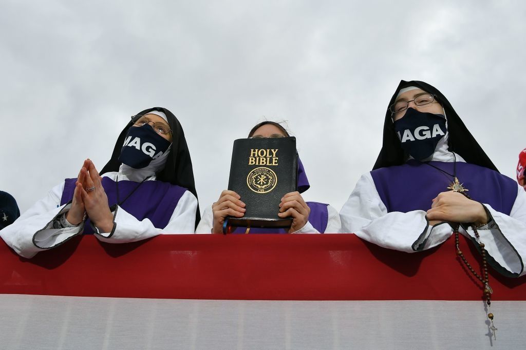 Three nuns wearing "MAGA" face masks attended President Donald Trump's campaign rally in Ohio on Saturday, setting the internet ablaze.