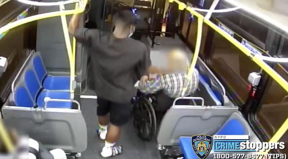 Soon the crook reaches down toward the victim — who's sitting in a wheelchair — and goes into the victim's shirt pocket as the S40 MTA bus stops at Clinton Avenue and Richmond Terrace, police told the paper.