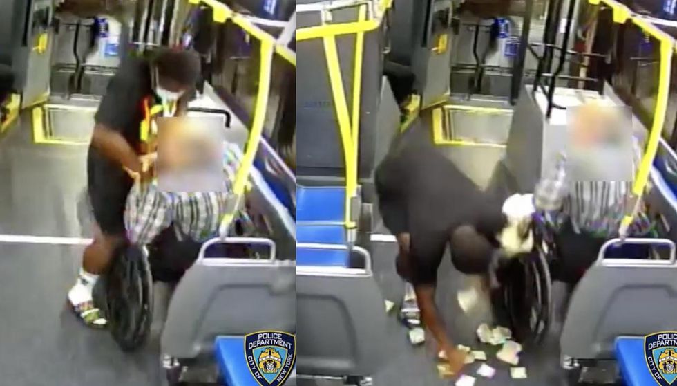 A crook was caught on surveillance video stealing hundreds of dollars in cash from a victim sitting in a wheelchair aboard a New York City bus earlier this month, police told the New York Post.