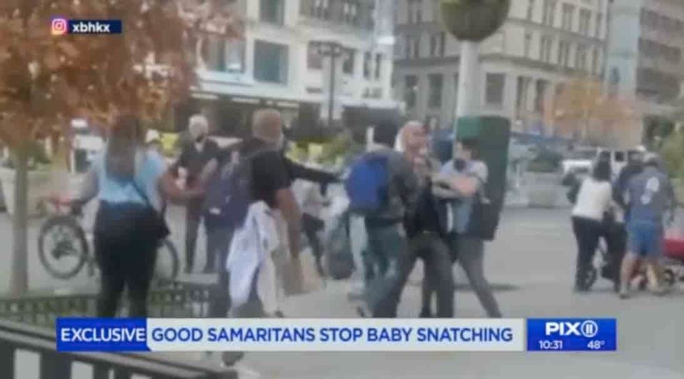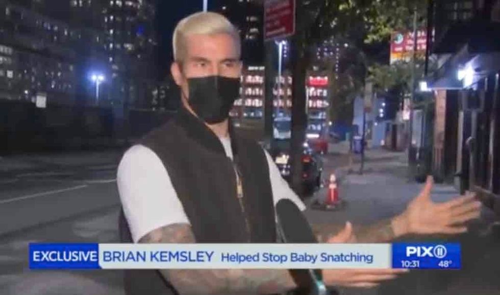 Brian Kemsley was walking with his girlfriend last week near New York City's Madison Square Park when he saw and heard something that required immediate action: A man was trying to grab a baby from a stroller, WPIX-TV reported.