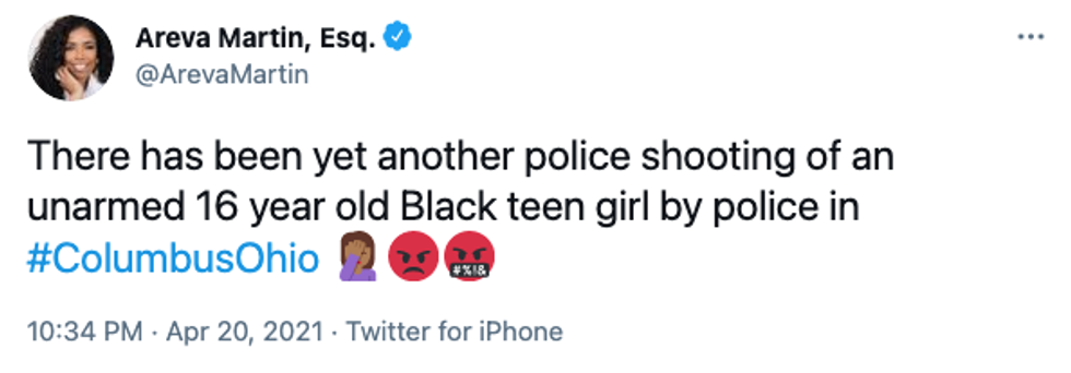 "There has been yet another police shooting of an unarmed 16 year old Black teen girl by police in #ColumbusOhio," CNN legal analyst Areva Martin added as a matter of fact.