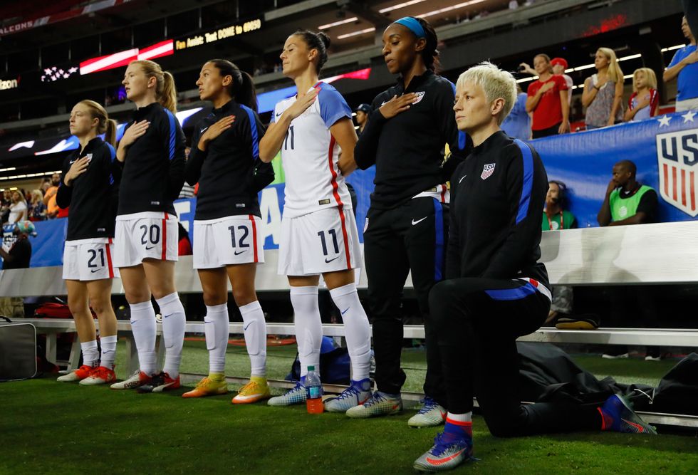 The openly gay soccer star triggered a wave of controversy in September 2016 after she knelt during the national anthem before a soccer match, becoming the first white athlete to follow in former NFL quarterback Colin Kaepernick's footsteps. The protest is a demonstration against rampant police brutality in the U.S.