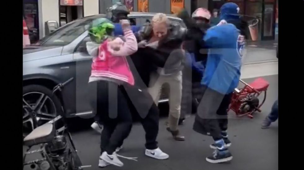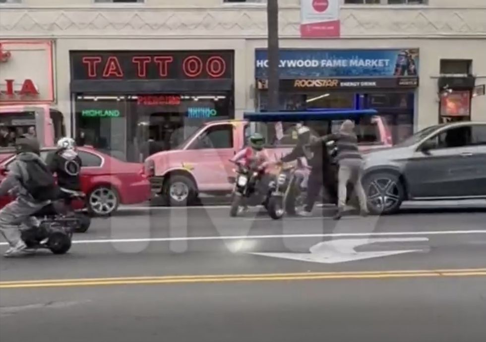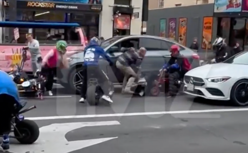 According to TMZ, Sunday's attack took place after a large group of riders were weaving in and out of traffic.