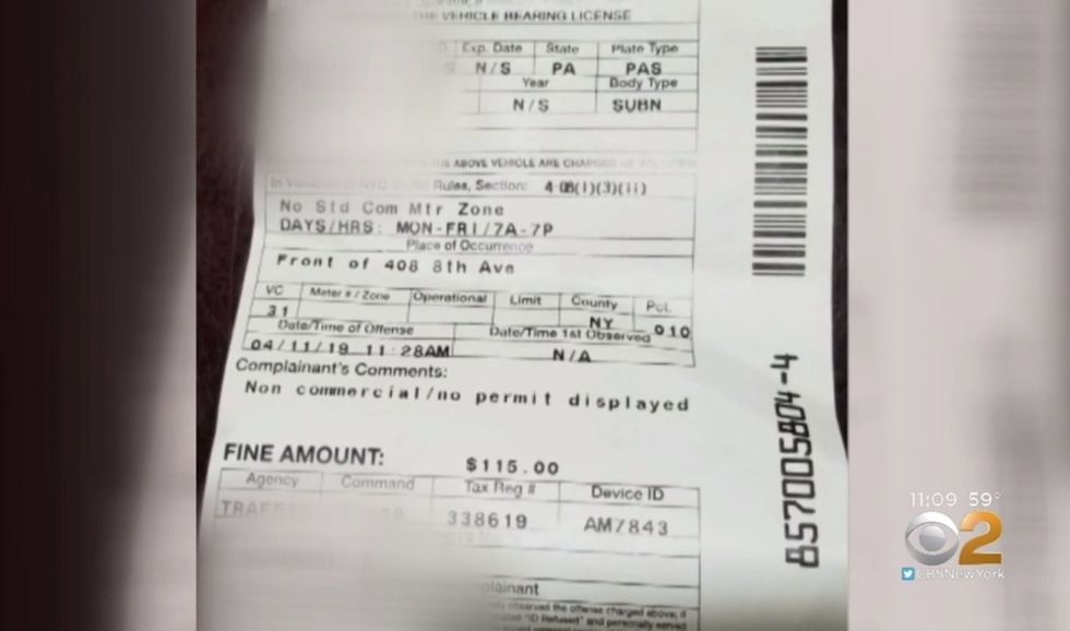 Except it wasn't completely "OK" — the official slapped a $115 ticket on Rodriquez's windshield before leaving, she told WCBS.