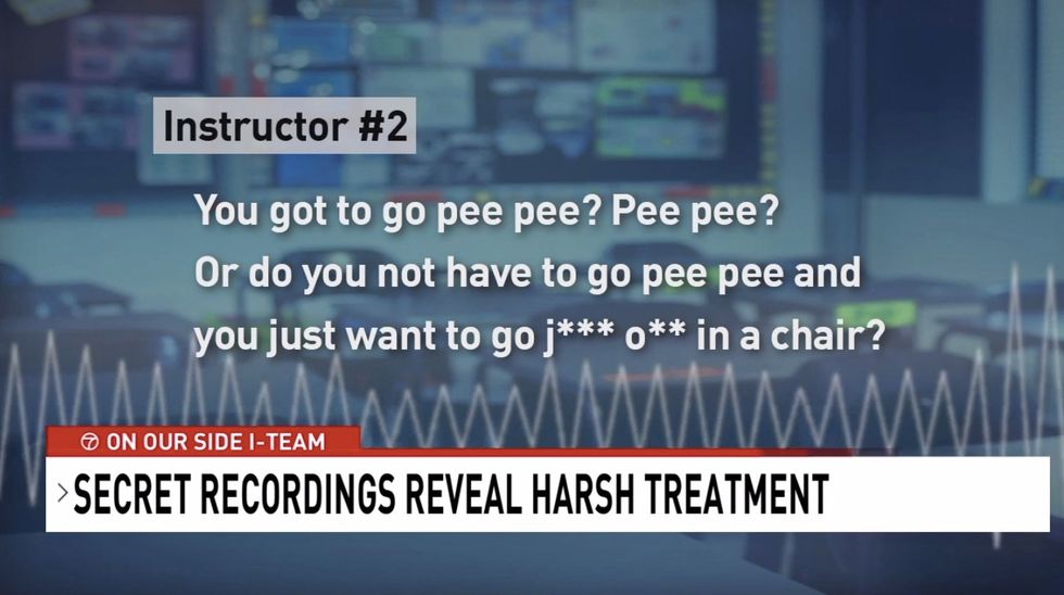 Instructor #2 was heard saying, "I'm gonna beat your butt for sure, and Owen — you're gonna get one just, just cause," the station said.