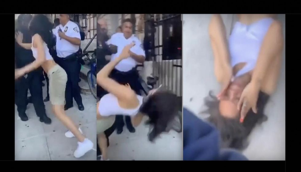 Officers were arresting Tamani Crum's boyfriend — an attempted murder suspect — in Harlem, and Crum confronted Kinsey, who was in uniform. Crum and Kinsey appeared to exchange initial contact, with Kinsey sending her backward a few feet.
