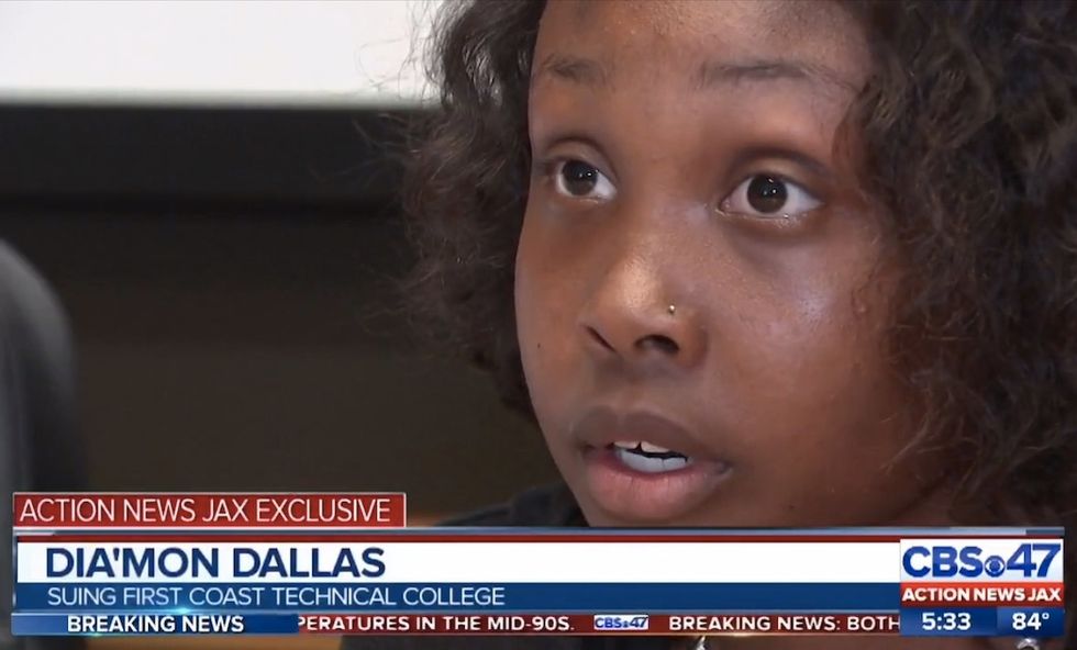 But now Dia'mon Dallas is suing First Coast Technical College in St. Augustine along with its principal and assistant principal, the station said.