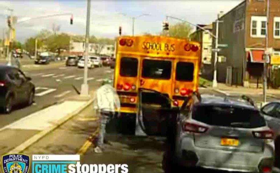 An SUV driver was apparently upset that a school bus was blocking his path at the corner of Hinsdale Street and Linden Boulevard around 5:15 p.m. Friday, Gothamist reported, citing police.