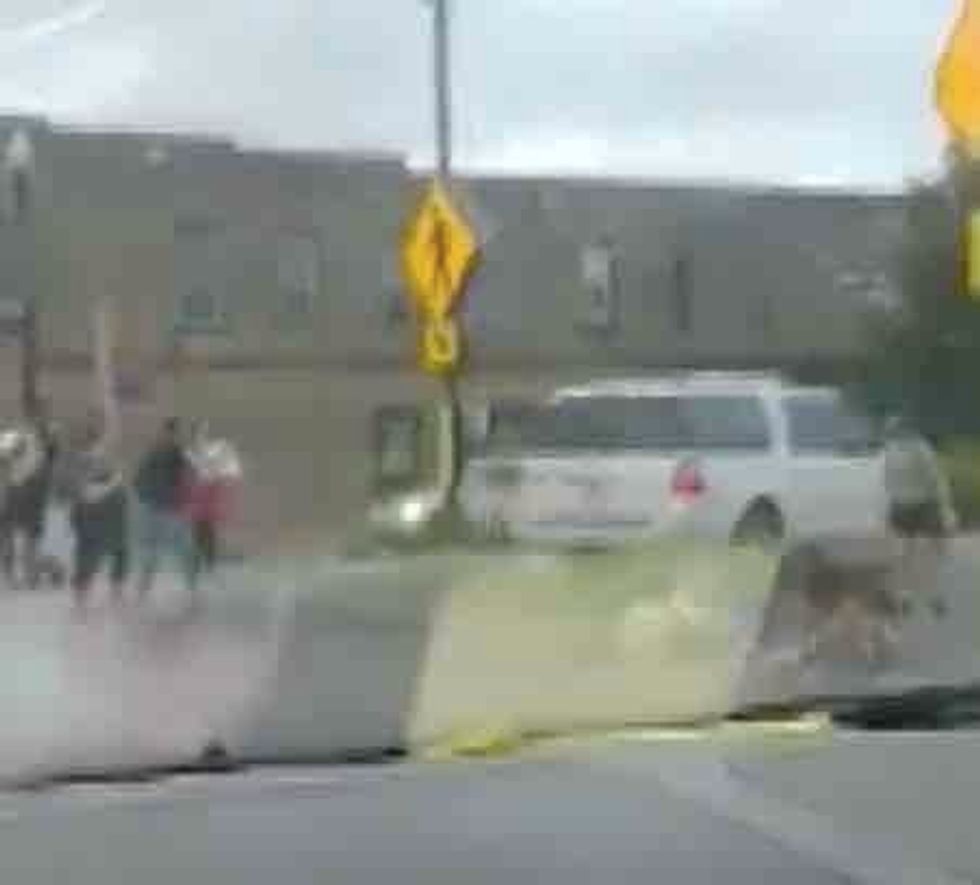 As the group crossed the street, some drivers grew impatient and honked their horns, the Press reported, adding that someone in a black vehicle gave the finger to demonstrators while maneuvering around the group.