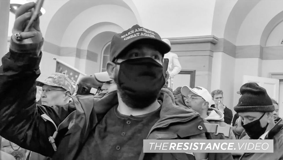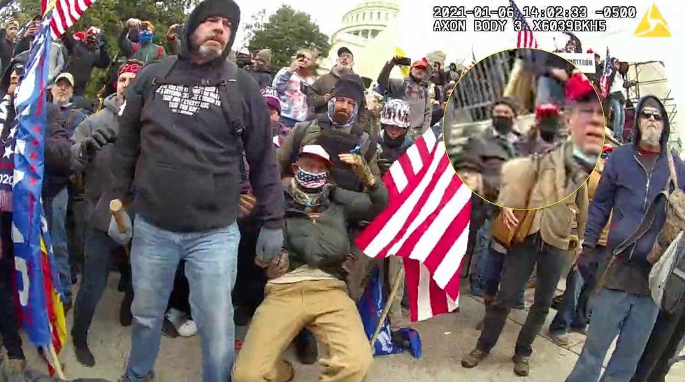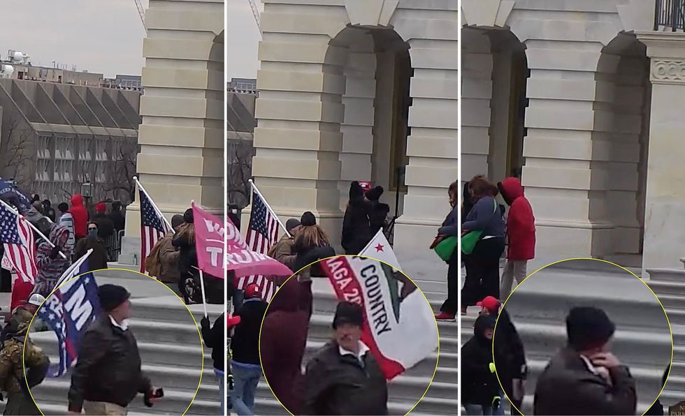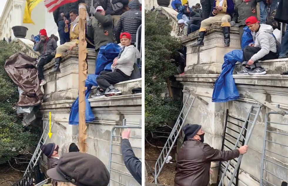 Moments later, video shot by convicted Jan. 6 provocateur John Sullivan showed the men climbing the steps under the scaffolding.