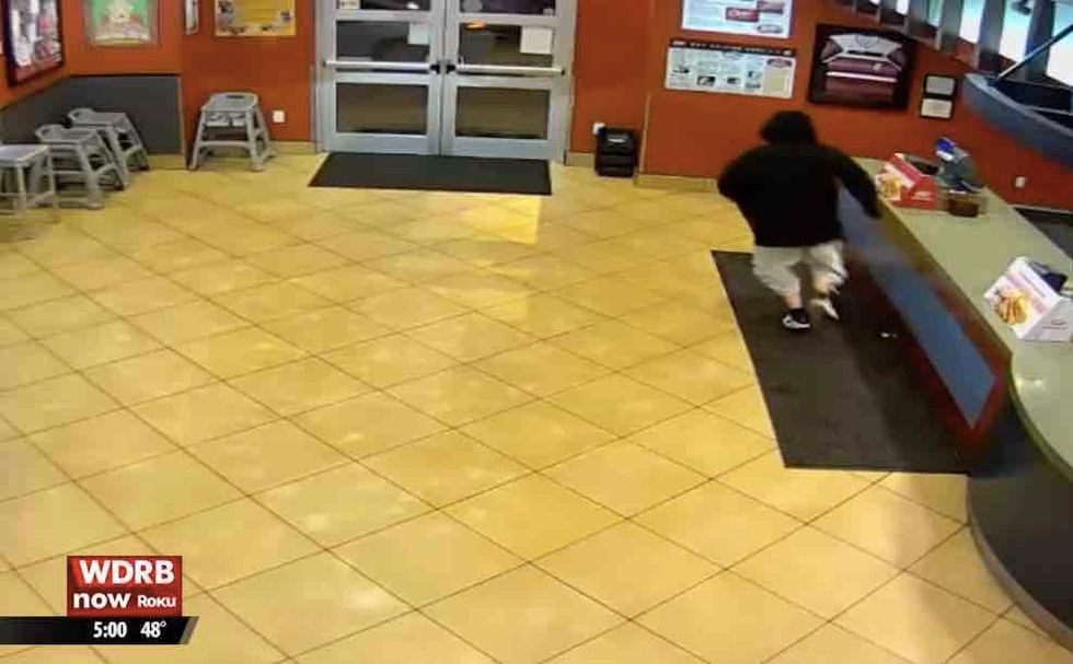 At one point 30-year-old Justin Carter walked into the restaurant wearing a mask, WDRB said, citing an arrest report — and police said he pointed a gun at the cashier and demanded money.