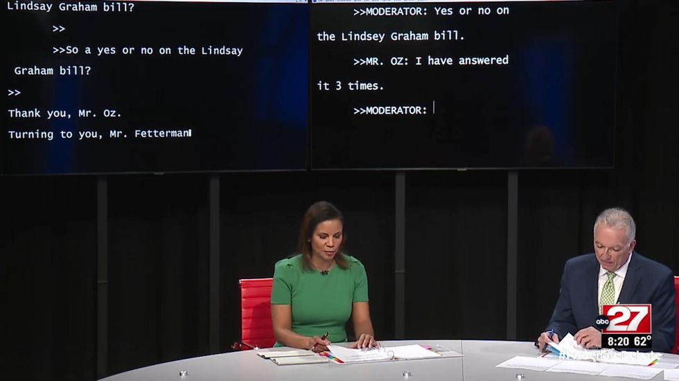 "Both candidates were offered the opportunity for two full rehearsals with the same equipment used in tonight’s debate; Mr. Fetterman chose to do only one," he explained. "In fact, Nexstar’s production team went to extraordinary lengths to ensure the effectiveness of the closed captioning process, and to accommodate several last-minute requests of the Fetterman campaign. The closed captioning process functioned as expected during rehearsal and again during tonight’s debate.