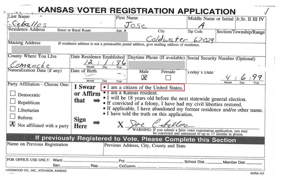 "In Kansas, it is against the law to vote if you are not a U.S. citizen. We allege that Mr. Ceballos did it multiple times," Kobach said.