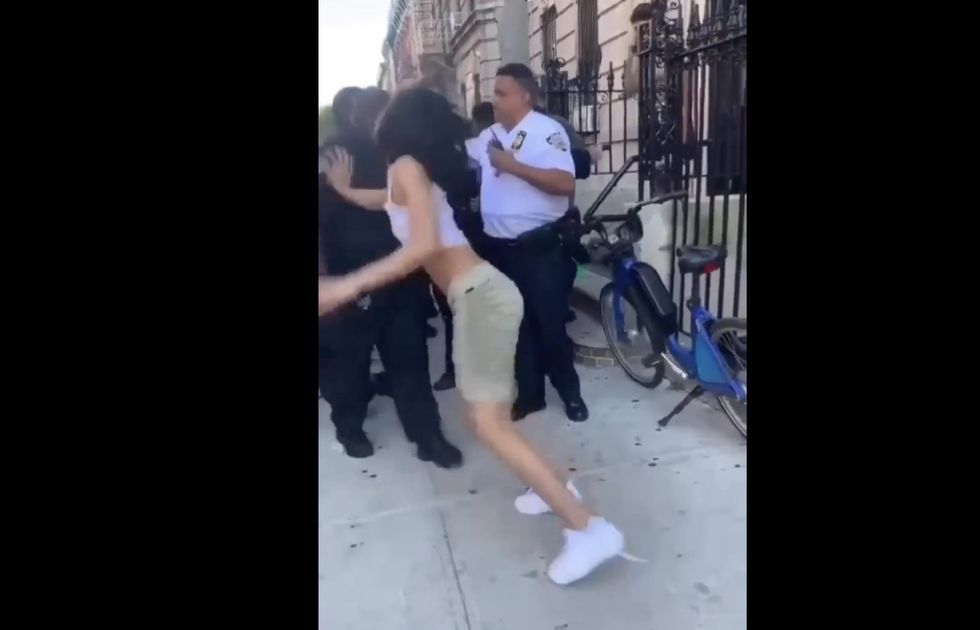 The video shows officers arresting the suspect on West 136th Street near Adam Clayton Powell Jr. Boulevard just before 5 p.m. Tuesday when Tamani Crum — a 19-year-old Bronx resident — rushed up to the scene, the New York Daily News reported.