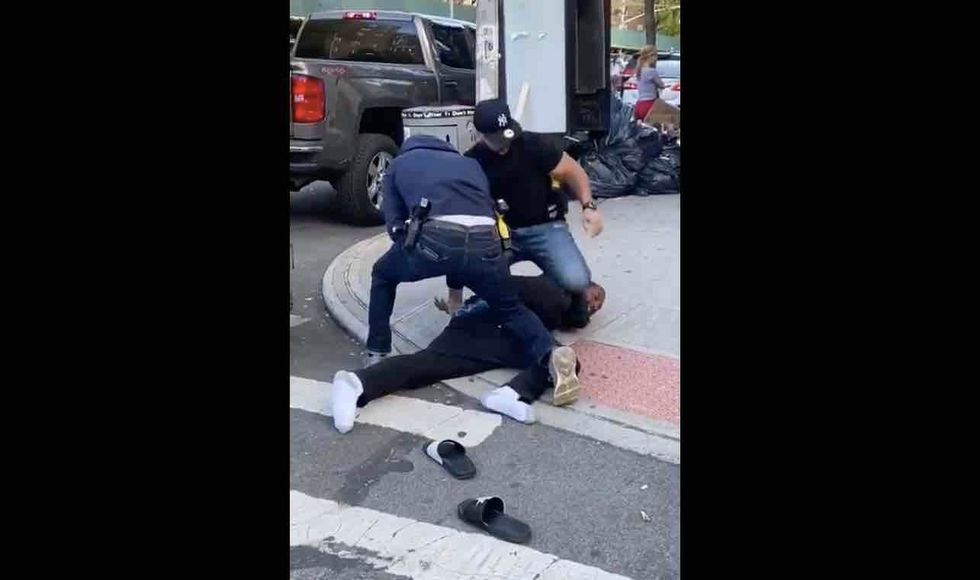 Witness Daquan Owens recorded cellphone video of the incident that's gone viral and told Gothamist it all started when plainclothes officers approached a man and a woman talking outside a deli around 5:30 p.m. and ordered them to separate. Owens told the outlet the man and woman were six feet apart in keeping with social distancing rules to fight the coronavirus spread.