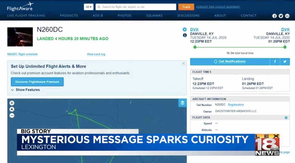 WLEX said it tracked the plane that performed the skywriting to "Ghostwriter Airshows" of Boyle County.