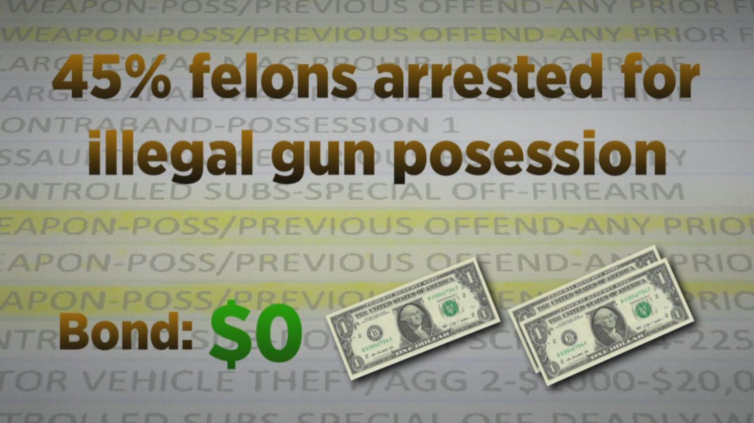 KCNC's investigation further found that in 2021 alone, more than 4,000 defendants in felony cases have been released on bonds of less than $5. KCNC found at least two other individuals who were arrested for violent crimes, released on nominal or no bond, and then subsequently were accused of committing murder, including Tonell Love, who is accused of stabbing a man to death six months after being released released on personal recognizance for an assault charge, and Joseph Topping, who is accused of firing a gun into a crowd and killing a person two months after being released on $1 bond for an illegal weapons charge.