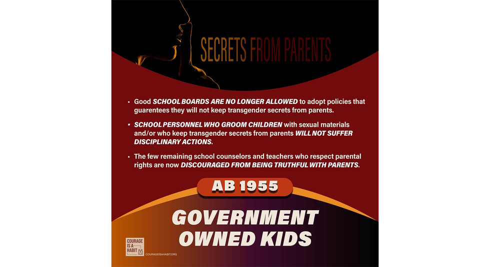 Lui, who moved his family out of California upon observing how similarly radical policies were transforming the state, indicated, "AB 1955 was passed solely in response to several school boards being flipped because parents were waking up and in order to discourage good teachers and counselors who still respect parental rights."