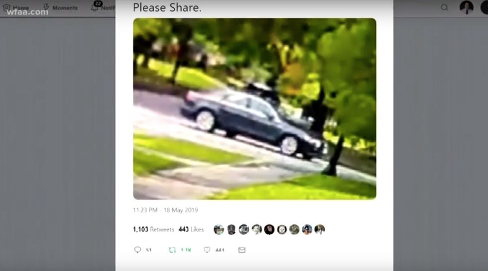 The homeowner shared the video with police and told WFAA-TV enough of the back of the Ford Five Hundred was visible to give investigators an idea of the type of car they were looking for.
