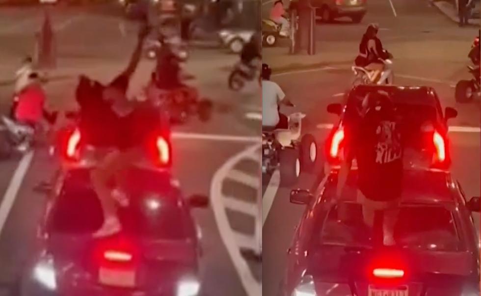 “I just started filming a video of all the bikers when next thing you know this guy hops off and jumps on this lady’s car,” Coloney told WCAU.