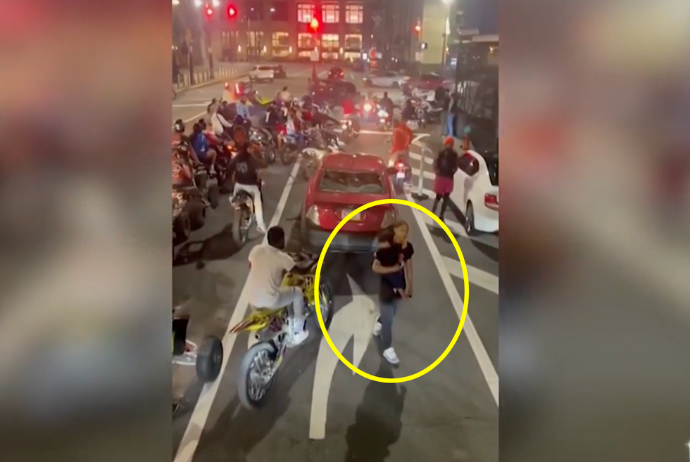 Video shows the biker getting down to the street while dropping what appears to be a gun.