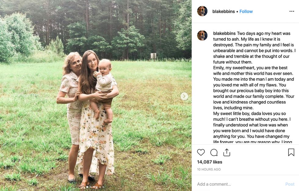 Tragically on August 27, 2019 Emily Bivens, her one year old son Cullen, and her mother Joan, lost their lives.