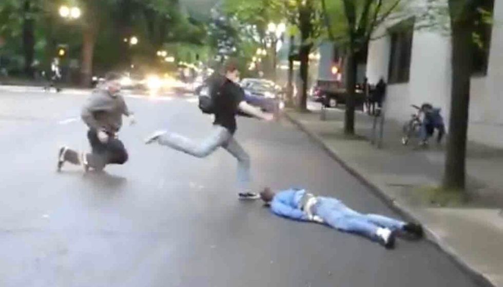 A group of protesters chased and pushed a man amid protesting in Portland, Oregon, last weekend, after which he fell on the street — knocked out, face down, and motionless. And that's when another male was caught on video kicking him in the head — and then running away.