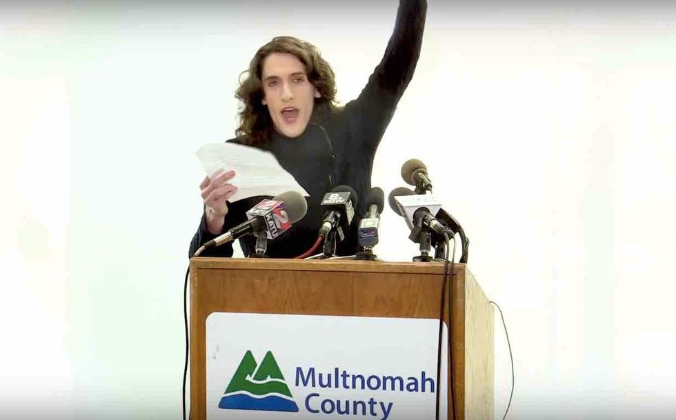 First up was a black-clad activist who took over the podium microphone after Wheeler stepped away from it. The protester said in a rapid-fire delivery that the halt on evictions was of "no use to the people of Portland."