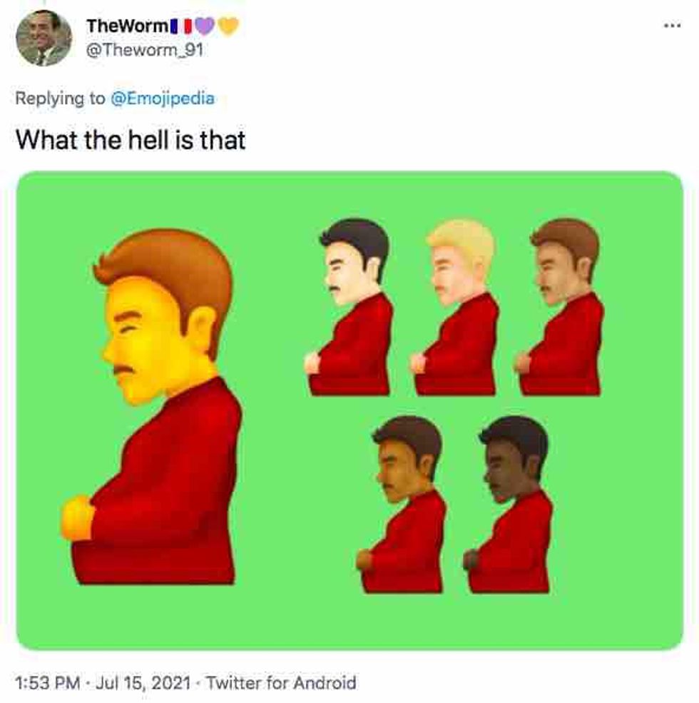 Reactions to the "Pregnant Man" and "Pregnant Person" emoji finalists have been unsurprisingly blunt, such as this user's take: