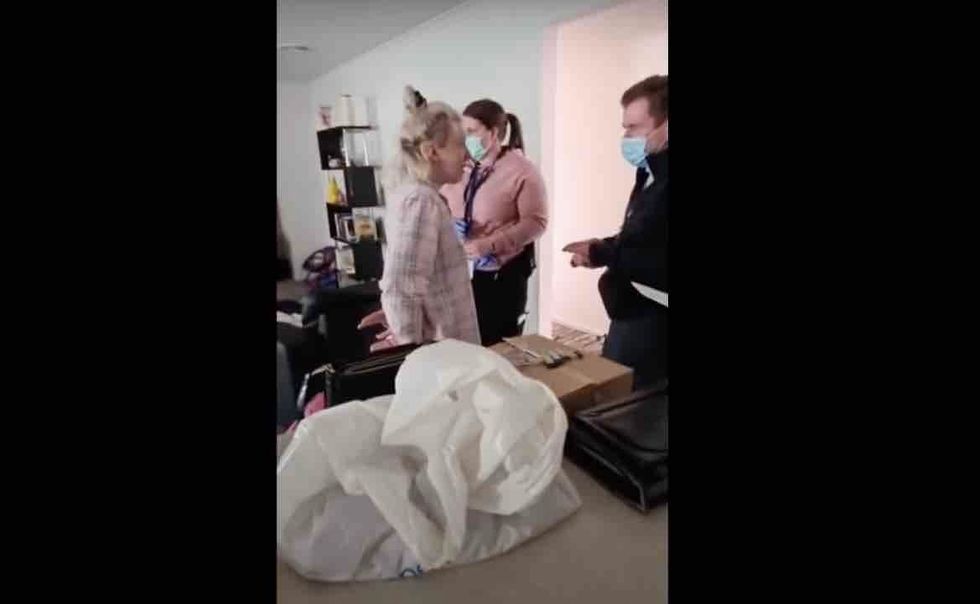 Video shows police entering her home in Miners Rest, which is northwest of Melbourne, on Wednesday afternoon, telling her she's under arrest, and placing handcuffs on her, the station said.