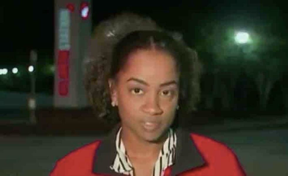 Reporter Iyani Hughes (pictured) and her station's stolen news van. (Image source: WSB-TV video screenshot)