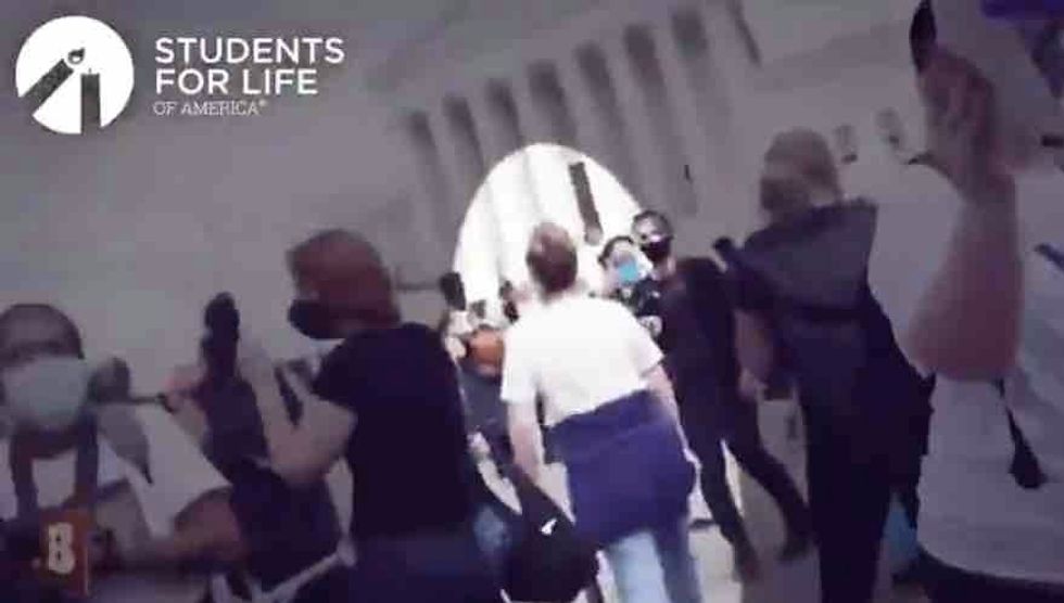 A female pro-life activist was punched in the face by a pro-choice woman in front of the Supreme Court building in Washington, D.C., on Sunday following President Donald Trump's nomination of Judge Amy Coney Barrett to the high court, Students for Life reported.