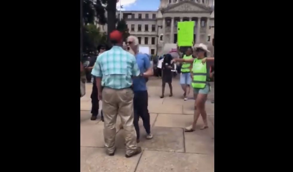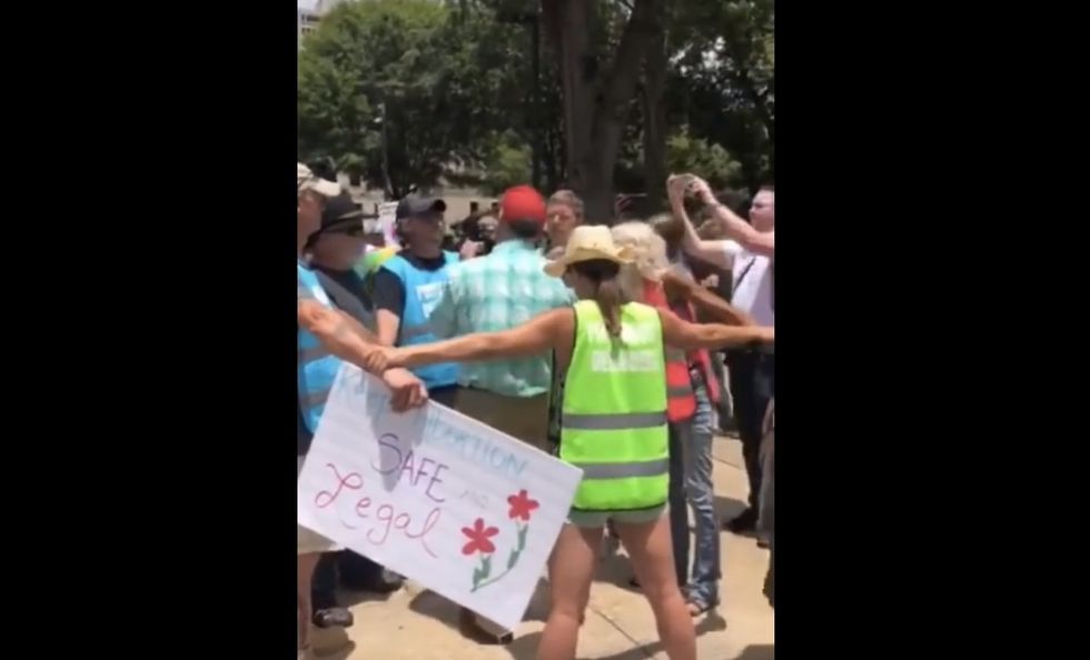 Video showed Boyd talking to and walking toward the pro-choice demonstrators, trying to convince them that "babies in the womb" are "human beings."