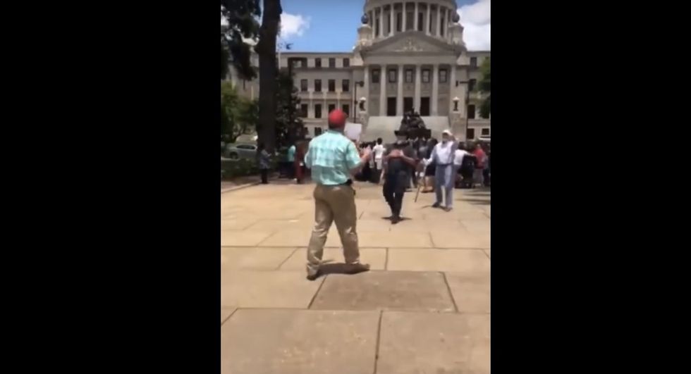 Pro-choice advocates gathered outside the Mississippi Capitol in Jackson on Tuesday to protest the state legislature's bill banning abortions once a fetal heartbeat can be detected.