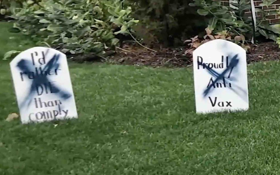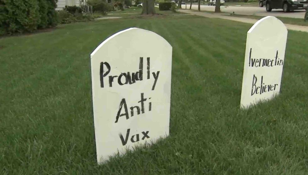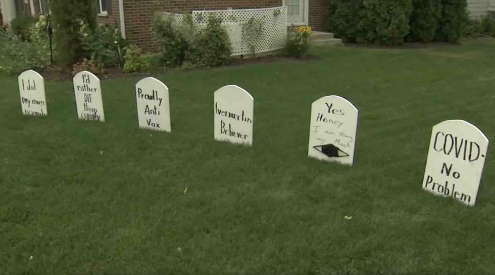 A suburban Chicago couple took it upon themselves to make fun of anti-vaccine beliefs by creating Halloween tombstones dedicated to the deaths of six of them, WLS-TV reported.