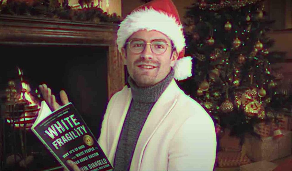 He also sings along to "White Privilege Christmas," admitting "you'll be sorry after hearing this one." (Ya think?) Witt then begins crooning, "I'm renouncing my white privilege this Christmas / just so my friends will think I'm woke / give reparations to black children / straight white men shut up and listen / to hear a speech from Robin DiAngelo."