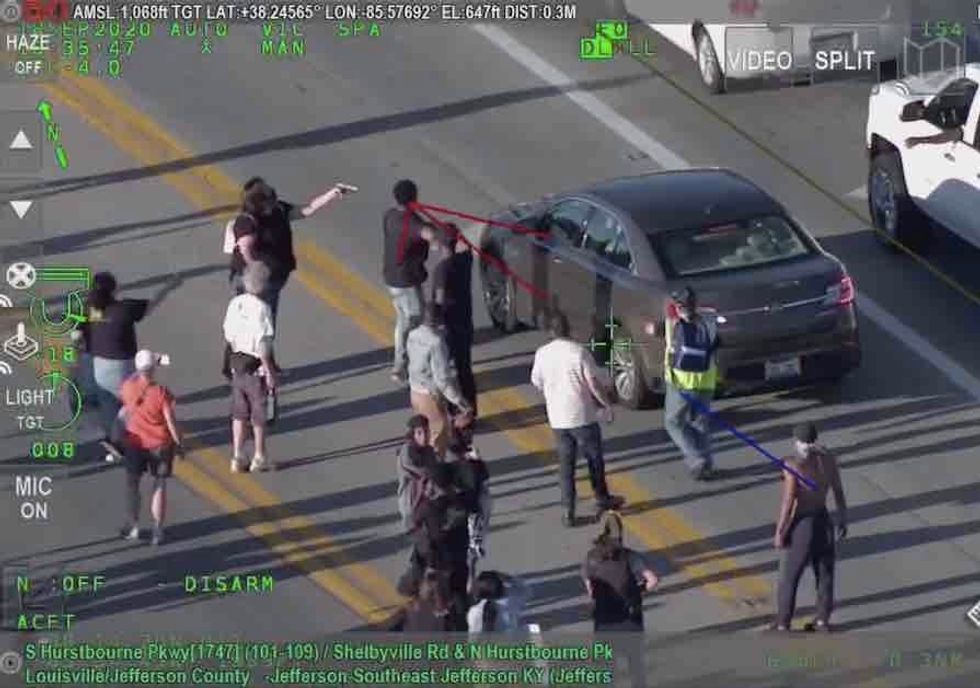Louisville Metro Police on Saturday released video taken from a police helicopter that was circling over the march, and it shows a woman — identified as Robin Ash — pointing a gun at the driver of a dark gray Ford Taurus, the station said.