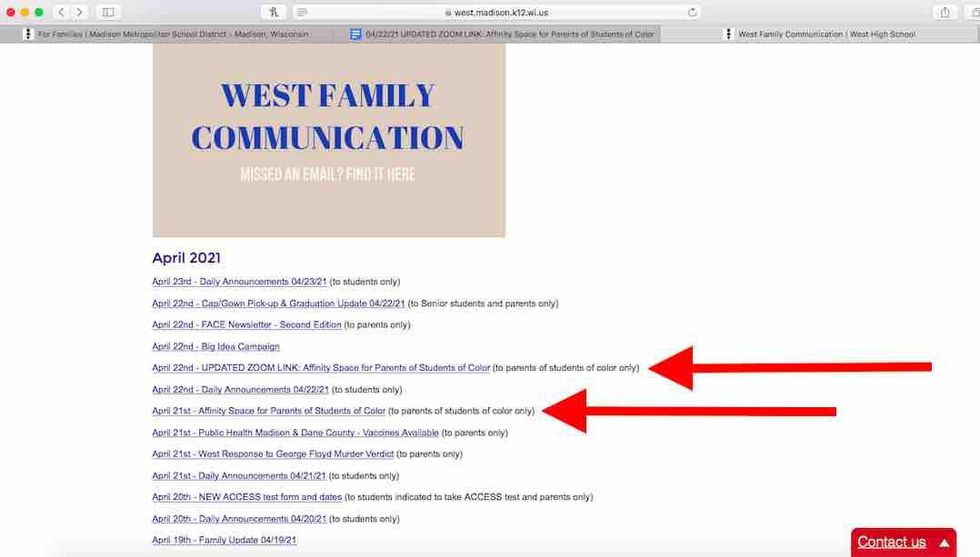 The Madison Metropolitan School District on Friday didn't immediately respond to TheBlaze's request for comment, which inquired why there was a Zoom link "for Parents of Color" and a separate Zoom link "for White Parents." TheBlaze also asked who authorized the notice and requested reasoning behind the decision to divide the meeting according to race.