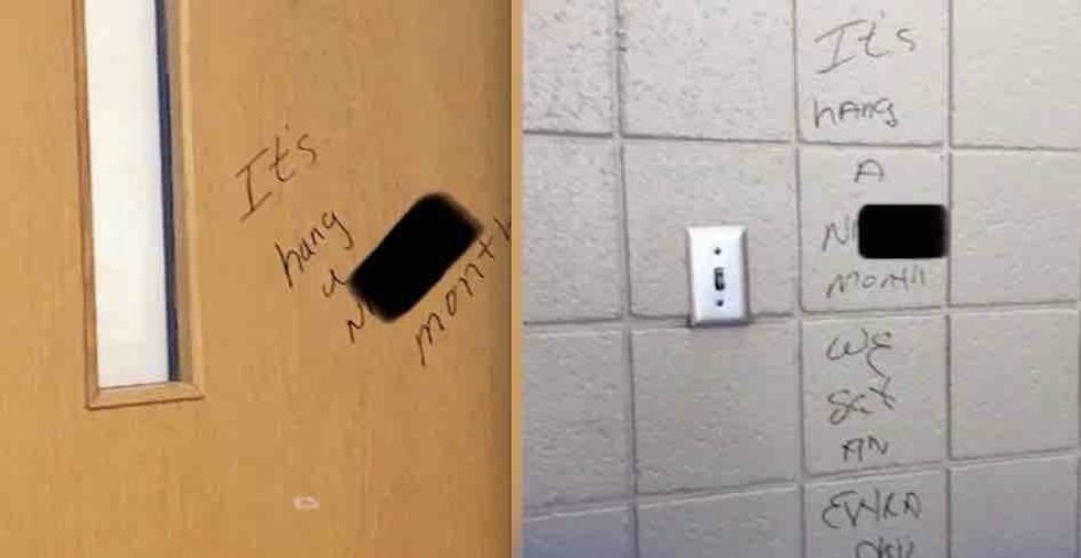 WMDT-TV said the phrase "It's hang a N [redacted] month" was written, and that the graffiti sparked unrest at Salisbury.